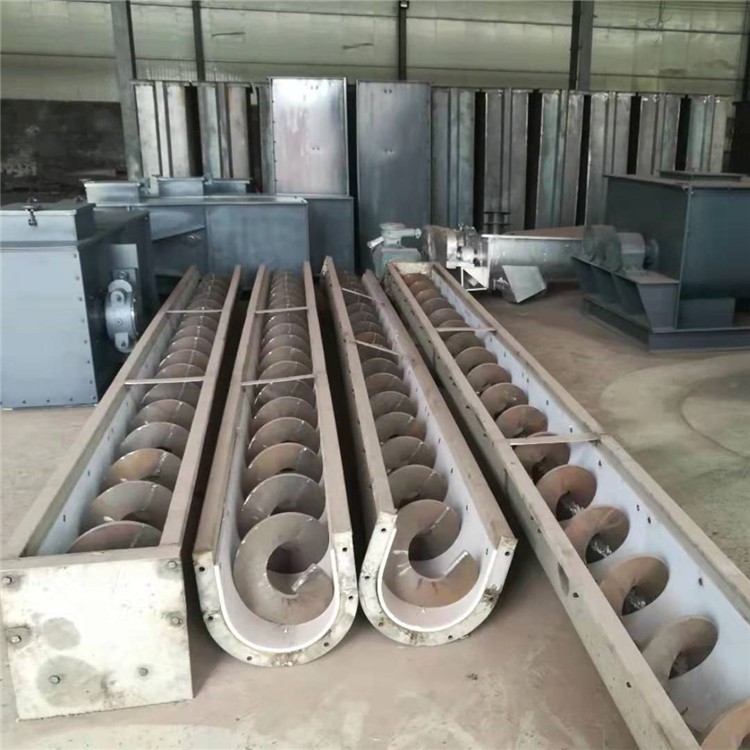 在使用螺旋輸送機粉狀物料時,因為粉狀物料的特性使其極易沿轉(zhuǎn)動軸滲入軸承座內(nèi),從而造成軸承的損壞,所以設(shè)計時著重考慮軸承座的密封問題。螺旋軸與軸承之間的密封采用雙道油封密封。左側(cè)的一道油封防止細粉進入軸承座,右側(cè)一道密封防止軸承的潤滑脂順軸流入料筒,污染物料。