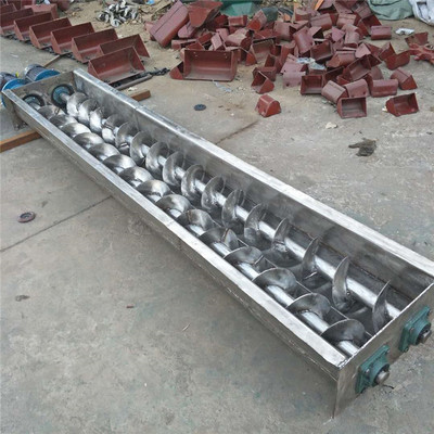 雙軸螺旋輸送機(jī)的原理是在兩條無(wú)縫鋼管內(nèi)分別裝有一根實(shí)體螺旋,其中一根是左旋,另一根為右旋。工作時(shí)兩根螺旋通過(guò)在軸伸位置的一對(duì)齒輪嚙合轉(zhuǎn)動(dòng),由于螺旋體的轉(zhuǎn)動(dòng),使物料作軸向移動(dòng),從而達(dá)到喂料目的。